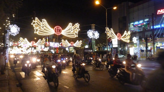 * Dans la ville pas beaucoup chose à faire (une statue, deux temples, un marché de nuit), on en profite pour prendre la température du pays et regarder défilé les centaines de scooter,